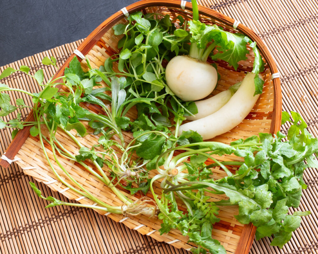 無病息災を願って味わう「春の七草」。古くから日本では1月7日に春の七草を使った七草がゆを食べ、一年の無病息災を願う風習があります。お正月のごちそうで疲れた胃腸をやさしく整える、日本ならではの食文化です。